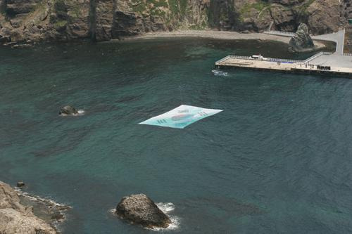 독도사랑을 만방에 알리기 위해 초대형 태극기를 만들고 독도사랑을 염원하는 6,000명의 손도장을 찍어 독도 앞바다에 띄운다는 것이다. 비주얼이 상상이 간다. 푸른 파도 넘실거리는 동해에 좍 깔리는 커다란 하얀 태극기, 파란색과 빨간색이 감싸는 태극무늬, 그리고 네 개의 괘. 여기에 장엄한 애국가가 깔리면 대한민국 국민이라면 어찌 아니 울먹거리며 감동받지 않으리오.