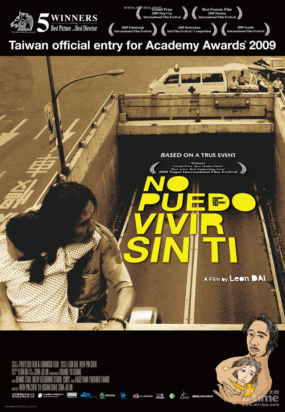 지난달(2009년 11월), 대만에서는 46회 금마장 영화시상식이 열렸다. 금마장은 홍콩의 금상장과 함께 중국어권에서는 양대 영화제로 손꼽힌다. 근래 들어 두 영화제 모두 중국, 홍콩, 대만에서 만들어진 영화들이 경쟁을 벌인다. 알다시피 대만은 후효현과 양덕창 외에는 뚜렷한 스타급 영화감독이 없는지라 대만에서 열리는 이 영화제가 남 좋은 일만 시킨다는 비아냥거림을 받을 정도로 외지(중국 혹은 홍콩)영화인의 잔치판이 되어가고 있다. 그런데 대만영화계도 조금씩 자기들 생존방식을 모색하고 있고 해마다 깜짝 놀랄 작품을 만들어내고 있다. 작년에는 <해각7호>라는 초특급 흥행 작품을 만들어내더니 올해에는 <불능몰유니>라는 작은 작품으로 대만영화계의 만만찮은 생존본능을 보여주고 있다. ‘불능몰유니’(不能沒有你)의 뜻은 애매한데 중문제목 옆에 ‘No Puedo Vivir Sin Ti’라는 제목이 붙어있다. 이건 스페인어이다. 서로 조합해보면 ‘너 없인 못 살아’라는 의미이다. ‘워낙 소중한 존재라서 만약 네가 내 곁을 떠나버리면 난 삶의 의미를 잃고 더 이상 살 수가 없어..’라는 뜻이다. 바로 대만 까오슝(高雄)의 한 ‘아버지와 딸의 이야기’이다.