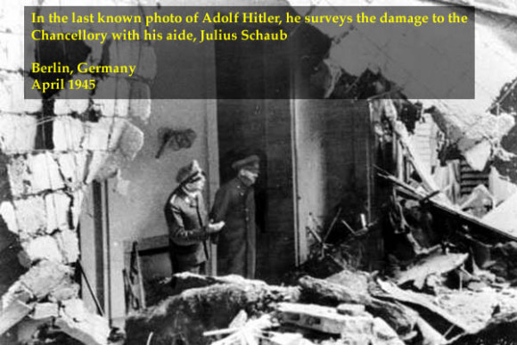 56번째 생일에 케이크를 먹고 히틀러는 오랜만에 지상으로 나온다. 공기를 마시며 대기하고 있던 히틀러 소년대 대원들과 인사를 나누고 몇몇에게 훈장을 달아준다. 짧은 연설을 마친 뒤 지친 목소리로 “여러분 만세!”라고 외쳤단다. 하지만 아무도 대답하지 않았단다. 종말은 그렇게 진행되고 있었다. 그날 영상이 살아있는 히틀러를 담은 마지막 영상이다.