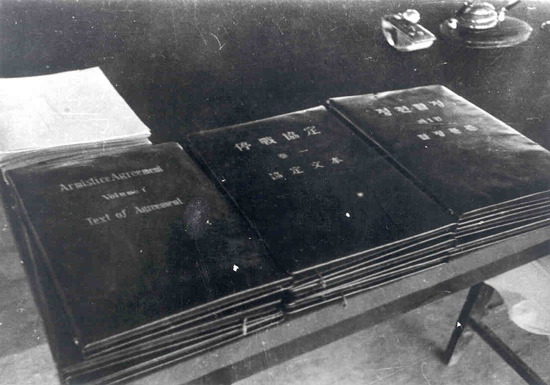 이날 양측 대표가 서명한 문서는 <<한국휴전협정>>, <<휴전협정에 대한 임시적 보충협정>> 두 가지였다. 이 두 문서가 국문(북한조선말), 영문, 중문 세 가지 언어로 작성되었다. 모두 18부이다. 수석대표가 서명한 문서는 곧바로 양측 최고 책임자에게 보내진다. 문서에 나타난 최고 책임자는 조선인민군최고사령관, 조선민주주의인민공화국 원수 김일성과 중국인민지원군 사령원 팽덕회, 그리고 국제연합군총사령관 마크 W.클라크 대장이다. 당연히 대한민국 이승만 대통령은 없다.