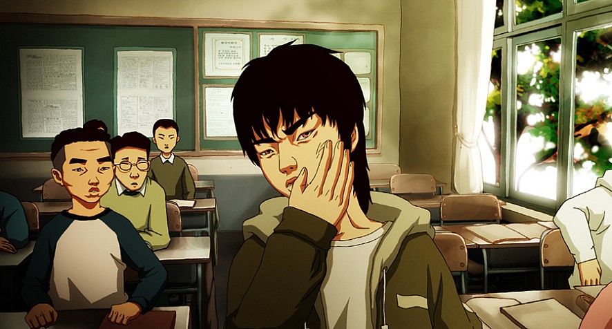 학교 내의 조직화된 폭력문화와 애써 눈 감거나 공범으로 빨려드는 무감각을 날카롭게 지적한 이문열의 소설 <우리들의 일그러진 영웅>은 1960년대를 시대적 배경으로 하고 있다. 부정과 비리의 반장을 중심으로 한국사회의 추악한 면모를 소름끼치게 그려냈다. 그리고 지난 주, 한국사회의 병폐를 적나라하게 보여준 사건이 인터넷뉴스를 휩쓸었다. 대한민국 어느 여중학교에서 여선생과 여학생이 서로 머리채를 끌어당기며 싸움을 벌였다는 기사이다. 분명 ‘학교사회’에는 선생과 학생이 각자 있어야할 자리가 따로 있음에도 불구하고 무언가 잘못된 질서와 체계가 여전히 움직이고 있다는 우울한 신호이다. 그런 우울한 때에 만화영화 한 편이 개봉된다. 올해 독립영화계 최고의 수확이라고 말할 수 있는 연상호 감독의 <돼지의 왕>이다. <돼지의 왕>은 지난 달 열린 부산국제영화제에서 처음 공개되어 높은 평가를 받았던 작품이다. 만화(독립)영화의 한계로 일부/특정 극장에서 개봉되지만 한국사회, 학교문제에 관심이 있는 사람이라면 꼭 챙겨봐야 할 ‘필견의 돼지’ 영화임에 분명하다.