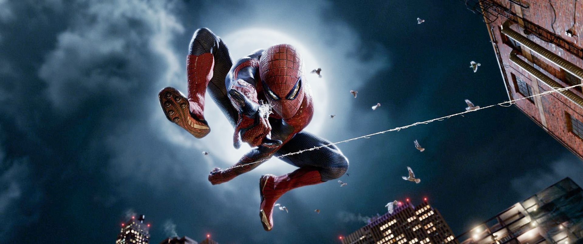 만화 스파이더맨은 심각한 사회인식의 문제를 제공한다. 서부시절 건맨의 정의 때부터 이어져온 사적(私的) 정의구현의 딜레마 말이다. 아버지의 행방불명/죽음에 얽힌 수수께끼를 풀기에도 가슴이 아플 틴에이저가 연애도 하랴, 야경꾼 노릇도 하랴 얼마나 바쁠까. 다행히 <어메이징 스파이더맨>은 알바 고생은 안 하는 것 같다. 샘 레이미는 영악하게 “큰 힘에는 큰 책임이 따른다‘라는 명제로 관객들을 거미맨의 고민에 동참하게 만들었다. 그런데 마크 웹 감독은 그런 다 아는 명백한 책임론에서 벗어나서 톨스토이 철학론보다는 양자물리학 책을 더 읽었을 청소년의 사고방식에 천착한다. 그리고 마구 날다가 빌딩사이에서 자유낙하하지 않을 만큼 아찔한 속도감을 선사한다. 일찌감치 마스크를 벗어던지고 여친 그웬과 키스할뿐더러 뉴욕 시경국장에게 자신의 정체를 드러내고 만다. 지하철에서 만난 사람들에게도, 난간에 매달린 자동차의 꼬마에게도 “내가 스파이더맨이다.”고 거리낌 없이 정체를 드러낸다. 그러다보니 특종에 눈이 먼 <데일리 버글>의 편집장이나 파파라치의 역할은 필요 없다.