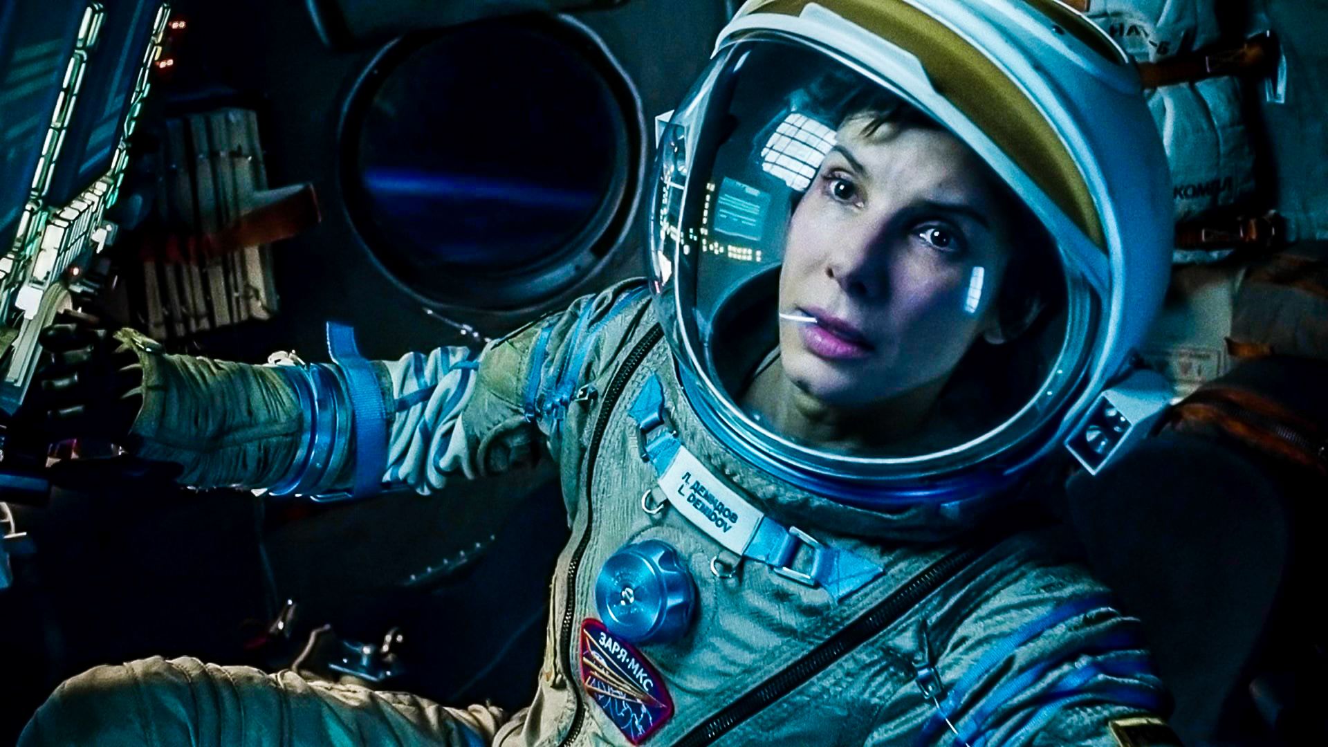지구(지상)로부터 600킬로미터 상공. 우주공간. 공기가 극도로 희박하니 소리를 전할 매질이 없어 적막하기 그지없다. 그곳에 미국의 우주선이 멈춘 듯 유유히 떠다니며 우주인들이 허블망원경을 수리하고 있다. 베테랑 우주인 맷(조지 클루니)과 과학자 스톤(산드라 블록)박사. 커다란 스크린은 온통 암흑이고, 저 멀리 마치 밝은 달처럼 비치는 지구의 아름다운 모습이 관객의 숨마저 멈추게 한다. 헬멧의 무선장치를 통해 매트의 시답잖은 농담을 들으며 스톤 박사는 수리에 열중한다. 그녀에게는 첫 우주여행이며 첫 우주유영이다. 엄마의 자궁 속에서나 느꼈을 최고의 고요함과 평안이 깨지는 것은 영화 시작 후 10여 분이 지난 뒤이다. NASA의 무선에 따르면 러시아가 고장 난 인공위성을 폭파시켰고 그 위성의 잔해가 지금 수리작업 중인 미국 우주선 쪽으로 몰려오고 있다는 것이다. 눈 깜짝 사이에 미국 우주선은 산탄총을 맞은 새 모양 엉망진창이 된다. 당연히 휴스톤과의 통신도 끊겨버린다. 이제 맷과 스톤에게 우주의 장엄함과 지구의 아름다움을 감상할 여유는 사라진다. 우주복에 남아있는 산소가 바닥나기 전에 가장 가까이에 떠돌고 있는 다른 우주선으로 헤엄쳐 가야하는 것이다. 오직 암흑과 고독, 그리고 산소부족, 그리고 어디선가 갑자기 쏟아지는 우주 파편들을 가까스로 피해가면서 말이다. 정말 우주 속 먼지에 불과한 인간은 살아서 우주선에 안착할 수 있을까? 그 모선이 작동은 할까. 푸른 별 지구를 두 번 다시 볼 수 있을까. 아름다운 지구의 보드라운 대지에 발을 디딜 수는 있을까. 영화는 장엄함으로 시작하여 경건함으로 끝난다.