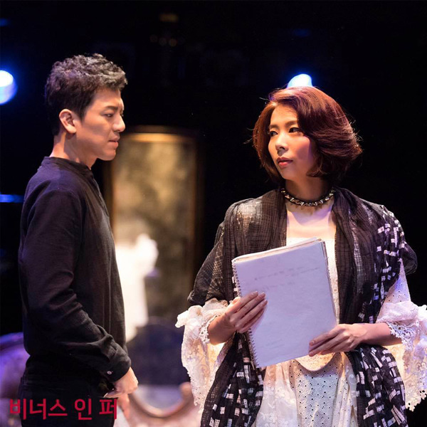 이도엽, 지현준이 토마스 역으로, 방진의 이경미가 자신만만한 오디션 배우 벤다 역으로 더블 캐스팅되었다. 25일 시작된 <비너스 인 퍼>는 8월 27일까지 종로5가역 인근 두산아트센터 Space 111에서 공연된다. 이 소극장은 중간에 무대가 있고, 그 양옆으로 관객석이 마주보고 있다. 객석에 앉은 관객은 한쪽에는 연출가가 앉아 있는 책상이, 맞은 편에는 오디션 받은 여배우가 앉을 소파가 자리하고 있다. 물론, 연출가와 여배우는 자리를 바꿔가며 ‘갑’과 ‘을’의 권력유희를 펼칠 것이다. 끝까지 긴장하시라! (KBS미디어 박재환)