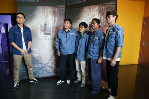 한편 지난 12일, 서울 메가박스 동대문에서는 <그림자들의 섬>의 언론시사회가 있었다. 영화상영이 끝난 뒤 김정근 감독과 영화에 등장하는 노동자(해고자) 김진숙, 박성호, 윤국성, 박희찬이 참석한 가운데 기자간담회가 열렸다.