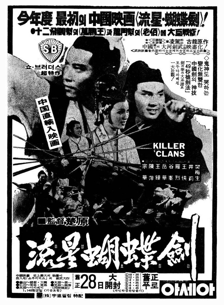 영화 [유성호접검](流星蝴蝶劍)은 고룡(古龍) 원작 무협소설을 인기 판타지 소설가이기도한 예광(倪匡)이 시나리오 작업을 하고 SB(쇼브라더스)의 명감독 중의 한 사람이었던 초원(楚原) 감독이 1976년에 만든 작품이다. 당시 수많은 SB무협극의 액션장면을 연출한 당가(唐佳)와 원상인(袁祥仁)이 이 영화의 무술감독을 맡아 요즘과는 사뭇 다룬 스릴을 느끼게 하는 액션장면을 연출한다.