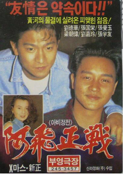(박재환 2002/10/26)왕가위 <아비정전>의 영어제목은 ‘Days of Being Wild’이다. 조금 시적으로 옮기자면 ‘뒷골목의 날들’정도가 어울릴 것 같다. 이 영화는 일본에서는 ‘욕망의 날개’(欲望の翼)로 소개되었다. 왕가위 영화에 대해서만은 우리나라 영화팬은 왕가위의 작명법을 그대로 받아들이는 경향이 있다. <아비정전>제목만으로는 이 영화가 어떠한 영화인지 전혀 짐작할 수 없다. 중국문학을 배운 사람이거나 루쉰(노신)에 대해 아는 사람이라면 혹시 <아큐정전>과 관련지어 영화를 감상할지도 모른다. <아비정전>은 확실히 문학적인 영화이다. 이문열의 <젊은 날의 초상>만큼 방황하는 젊음의 순간을 그리고 있다. 왕가위 영화답게, 결코 거시적이거나 연대기적이지는 않다. 왕가위는 시간단위, 그것도 ‘분’ 단위에서 멈춰 선 한순간의 격정과 미세한 떨림만을 포착하고 그 여진을 어둠 속에 매어둔다.