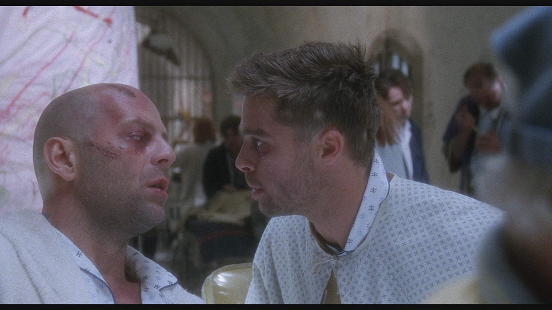 제임스 콜이 탐사를 나갈 때마다 조금씩 구체화되는 지구의 운명은 다소 황당하다. 정신병동에서 처음 만난 고인스(브래드 피트)는 진짜 정신병자! 아니면 완벽하게 정신병자를 흉내 내는 혁명가였다. 그의 아버지는 유명한 바이러스 생물학자. 콜의 지상 탐사를 통해 땅 밑 과학자나 관객들은 몇 가지 상황전개를 유추하게 된다.