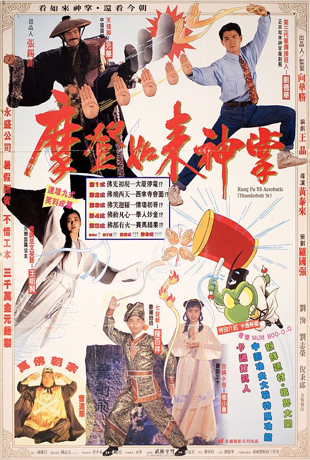 황태래 감독의 1990년도 작품 <마등여래신장>(摩登如來神掌)은 흥미로운 작품이다. 유덕화와 왕조현이 나온 코믹 액션물인데 족보가 좀 있다. 제목의 ‘摩登’은 ‘modern’을 뜻한다. (우리나라에는 [무림지존]이라는 제목으로 비디오가 출시되었다) 원래 조달화가 1960년대에 주인공으로 나왔던 ‘여래신장’은 쇼 브라더스 이전에 꽤나 인기가 있었던 활극물이다. 다행히 ‘마등여래신장’에는 영화 곳곳에 옛날 영화가 삽입되어 있다. 황태래 감독은 1982년에 이미 이동승이나 혜영홍, 나열, 그리고 물론 조달화 등을 캐스팅하여 ‘여래신장’을 리메이크한 적이 있다. 1990년도 작품에는 왕정이 관여한다. 오락영화의 지존인 왕정은 홍콩사람들이라면 우리나라 ‘홍길동’만큼이나 잘 아는 여래신장 캐릭터를 현대판 여래신장에 절묘하게 집어넣는다.