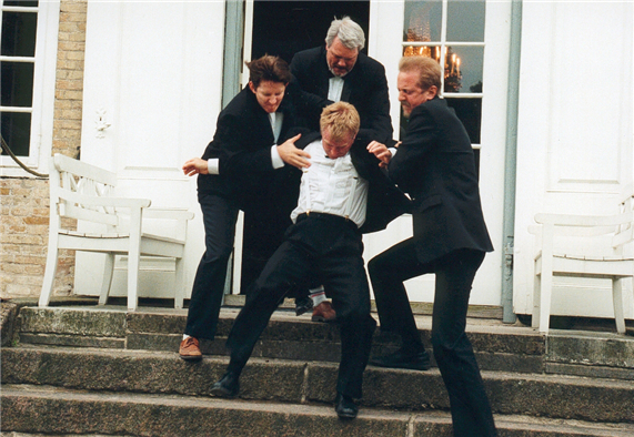 “아버지의 환갑에 이렇게 모여 주셔서 감사합니다. 저도 우리 아버지에게 감사의 말씀을 올리고 싶군요. 어릴 때부터 하루도 빠짐없이 나와 나의 쌍둥이 누이를 성폭행하신 아버지가 아직도 건강하게 살아계시다니 너무 행복하군요. 나와 내 여동생을 강간하였고, 그녀를 죽음에 이르게 한 아버지를 위해 건배” 일순간 연회장은 엉망이 되어 버린다. 그러나, 아버지의 위엄과 어머니의 연설로, 이 모든 넌센스는 큰아들의 주정, 혹은 정신병적 돌출발언으로 만들고 만다.