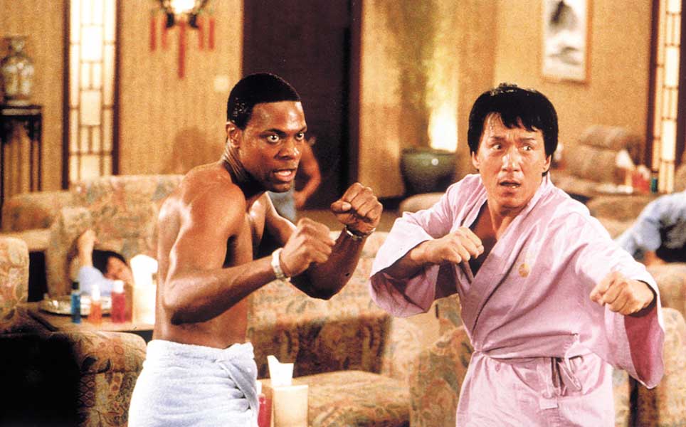 미국판 <러시 아워2>포스터에는 개런티 1,700만 달러를 받았던 성룡이 입담 세기로 유명한 크리스 터커와 나란히 포즈를 취하고 있고, 홍콩쪽 영화포스터는 장쯔이까지 가세한 세 명의 배우가 발차기를 하는 모습을 메인 포스터로 삼고 있다. 국내용 포스터는 성룡과 장쯔이가 화면을 가득 차지하고 있다. 이 영화는 어느 모로 보나 미국시장과 세계시장(특히, 아시아권)을 철저히 염두히 두고 만든 영화이다. 물론, 기본적으로 이 영화는 미국 뉴라인 시네마가 <패밀리 맨>이라는 미국식 가족주의를 그려내었던 브렛 래트너 감독이 만든 미국 영화이다. 영화의 메인 주인공은 크리스 터커이다. 그의 끝없는 수다는 극중에서 나오듯이 (쉬지않고 떠든다는 의미에서) '세븐 일레븐'이다. 미국 관객들이 그토록 이 영화를 좋아한 것은 아마 크리스 터커의 따발총 대사와 성룡의 전광석화같은 코믹액션이 찰떡 궁합같이 조화를 이루었기 때문일 것이다. 그러나, 물론,영화의 전반부를 차지하는, 성룡의 안방인 홍콩에서의 촬영 씬들은 다소 산만하다. 그것은 후반부 미국에서의 촬영장면과 비교하면 특히 두드러진다. 미국까지 진출한 성룡의 입지를 증명해주듯이 홍콩당국은 대사관과 경시청 폭발장면이나 번화가 촬영장면에서는 적극적인 행정지원을 해주었다지만 홍콩의 영화산업과 미국의 영화산업의 격차를 생각해보게끔 하는 어설픈 장면이 눈에 띈다. 아마도 미국인 작가가 시나리오를 맡아서인지 홍콩을 그다지 매력적인 도시로 보이게하지는 않는다. 단지 홍콩경찰서 사무실에 걸려있는 '홍콩관광청'의 홍콩 관광 포스터만이 홍콩임을 상기시켜준다. 성룡이 비록 굉장한 에너지를 내뿜지만 결국 미국 관객에게 남기는 홍콩의 인상은 좋지만은 않을 것 같다.