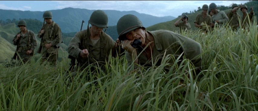 영화는 몇 편의 이전 영화들의 이미지를 불러온다. 프란시스 코폴라 감독의 <지옥의 묵시록>, 올리버 스톤의 <플래툰>같은 전쟁영화의 명작들을 상기시키는 것이다. 하지만, 말릭 감독의 이 영화에서는 정말 의외의 이야기를 듣고, 보고, 느껴야하는 고역이 있다. 그것은 상영시간이 너무 길어서라든가, 이야기의 진행방식이 등장인물의 과거회상씬이 시도때도 없이 끼여드는 형식 때문이라기 보다는 전적으로 철학적 주제의식의 접근문제에서 기인한다고 본다. 이 영화는 실제 1942년 콰다카날전투에 참여했다는 제임스 존스의 동명소설을 옮긴 것이다. 오하마 해변에서처럼 미군은 그 산속고지의 일본군 전투 진지를 함락하기 위해, 엄청난 피해를 입어야 했다고 한다. (이는 단순히 현실을 무시하는 작전사령부-닉 놀테로 대변되는 권력자의 야욕때문이라고 하기에는 단견이다) 그 누군가가 그 위치에 있더라도 - 그것은 마치 새로 부임한 중대장 조지 클루니의 말처럼 - 난 아버지고 상사는 엄마다. 이제 너네들을 이끌고 저 진지를 접수하는 것이다.- 그러한 무모한 작전을 수행했어야 했을 것이다. 읽어보지 않은 이상 모르겠지만, 원작소설의 키 포인터는 그런 것이었단다. 죽음과 좌절, 분노와 동료애에 사로잡힌 미군은 진지 접수 후, 살아남은 일본군 포로들에게 잔혹한 보답을 한다는 것이다. 이는 <플래툰>에서도 보아왔고, 많은 휴머니즘 영화에서 지켜본 것이다. 적어도 영화내내 진지 코앞에서 동료가 죽어가고, 자신의 팔 다리가 잘려나갈 동안 속수무책으로 당할 동안 관객들마저 그러한 인식을 갖게 되는 것이다. 저 진지만 접수하면, 저 진지만 접수하면... 그 속에 그 어떠한 인간존재가 있던 죽여버리고 말 것이라고....
