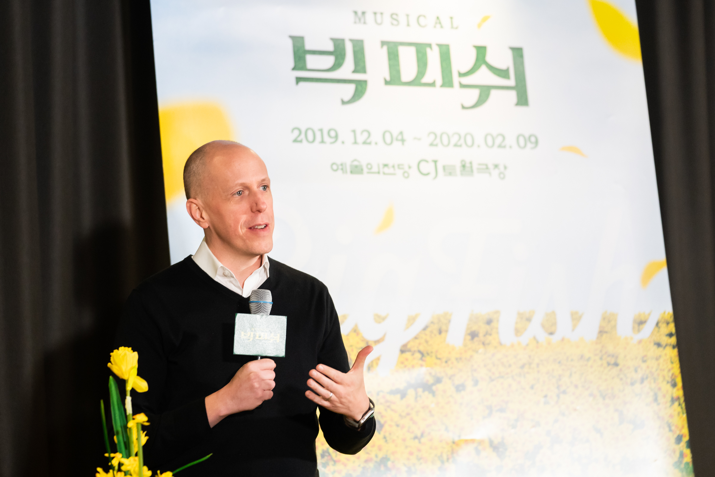뮤지컬 <빅 피쉬>는 지난 2013년 미국 브로드웨이에서 초연되었다. 한국의 CJ ENM은 처음부터 글로벌 공동 프로듀서로 참여했고, 한국무대에 올리기 위해 6년 동안 심혈을 기울였다. 그 결과 뮤지컬 ‘빅 피쉬’는 한국인의 감성에 맞는 스토리에 초점을 맞춘다. 특히 연말연시에 더 어울릴 가족극 형태로. 무대는 디즈니뮤지컬 ‘라이온 킹’에서 관객을 감탄시킨 '퍼펫‘이 등장하며 극의 환상적 요소를 더한다.