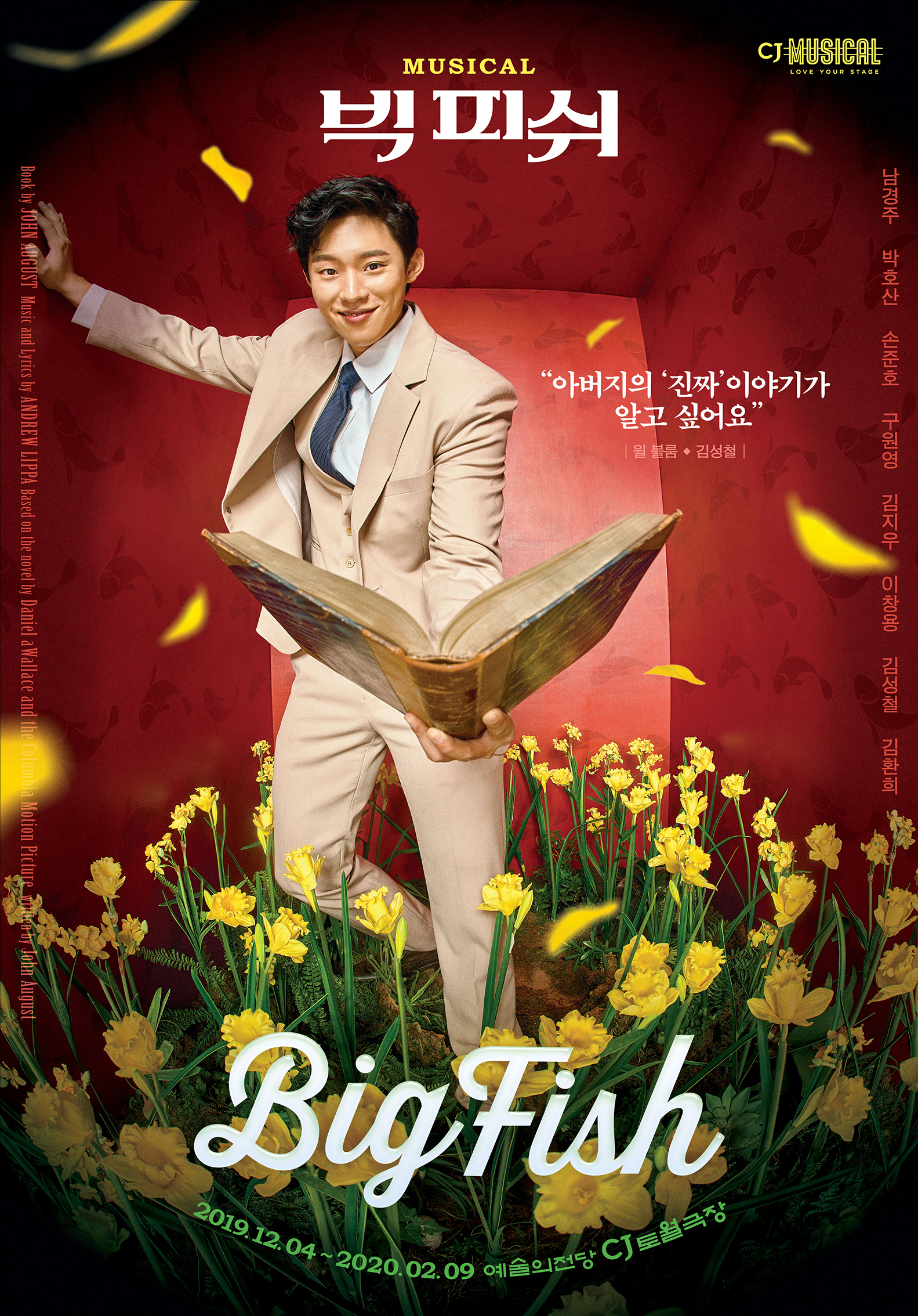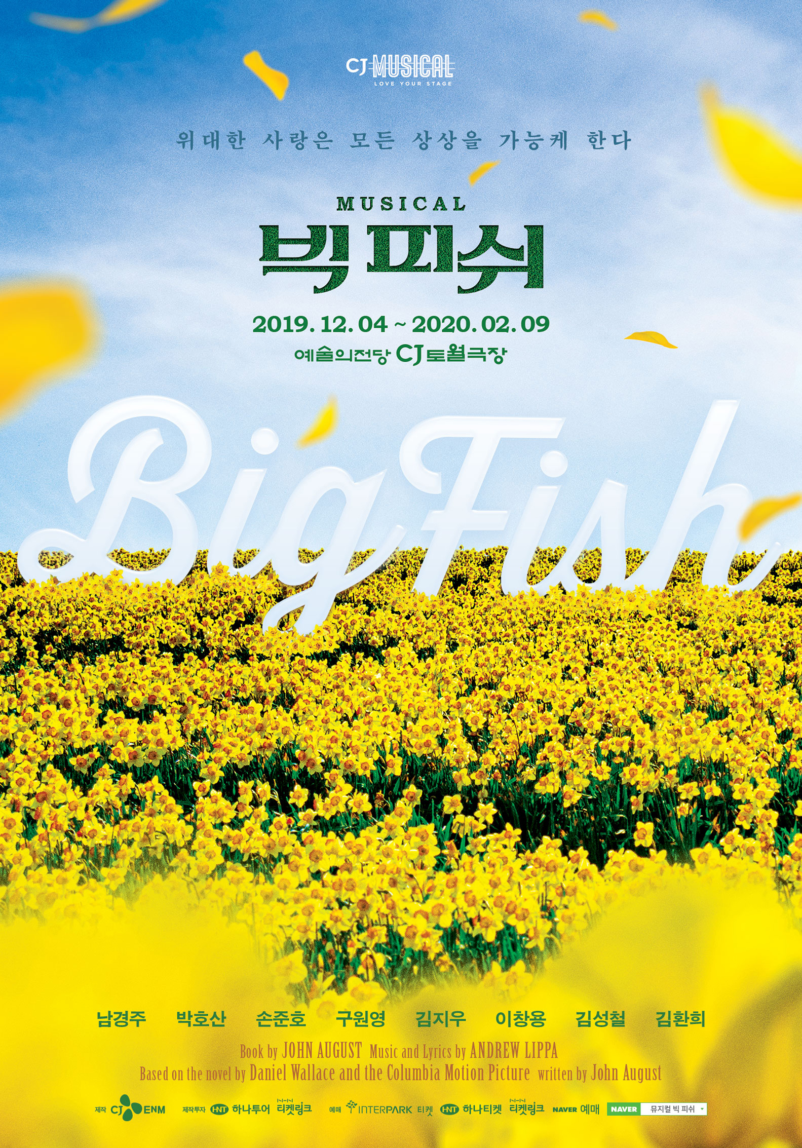 윌러스의 소설을, 팀 버튼의 영화를 보지 않았더라도 뮤지컬 <빅 피쉬>의 매력은 무궁하다. 당연히 아버지와 아들의 정(情)과 무대를 가득 채운 노란 수선화의 산뜻함이다.
