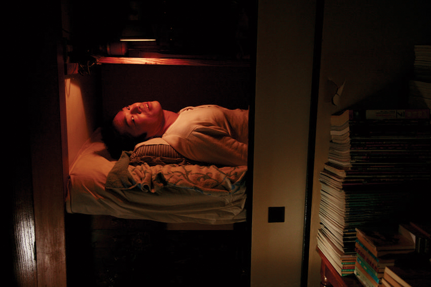 일본 대중문화에는 꽤 많은 ‘히키코모리’가 등장한다. 봉 감독은 도쿄를 다루는 옴니버스를 생각하면서 ‘히키코모리’를 끌어들인 것이다. 그가 생각한 이야기의 핵심은 이렇다. “도쿄의 모든 사람이 히키코모리가 되어버린다. 그런데, 어느 날 지진이라도 일어나서 다들 집밖으로 뛰쳐나온다. 잠깐 지축이 흔들리며 사람들은 우왕좌왕. 그러더니 흔들림이 딱 멈춘다. 갑자기 어색해진 사람들. 주섬주섬, 다시 자기만의 보금자리로 돌아간다.” 봉 감독은 이런 이미지를 영상화시킨다. ‘10년 된’ 히키코모리의 시간은 층층이 쌓인 빈 피자박스와 차곡차곡 벽을 채우는 두루마리 휴지심으로 형상화한다. (봉테일의 섬세함은 설명을 듣고 나서야 ‘아하~’하게 된다. 남자가 피자를 먹고 난 뒤, 뒷벽에 쌓인 피자박스의 높이가 달라진다. 1년 동안 더 많이 쌓인 박스라니!)