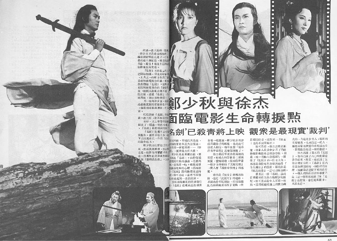 젊은 검객 이모연을 연기한 배우 정소추는 1960년대부터 TVB의 수많은 무협드라마의 주인공으로 초절정 인기를 누린 배우이다. 기억에 남는 영화작품은 서극 감독의 레전드 SF무협 <촉산>(新蜀山劍俠, 1983)이다. 천하고수지만 슬픈 운명을 맞는 화천수 역은 쇼브러다스 작품에서 홍콩뉴웨이브를 거쳐 홍콩느와르작품까지 출연했던 베테랑배우 전풍이 맡았다. 악당 련환 역의 서소강도 그 시절 홍콩 무협물에서 숱하게 만나보았던 배우.