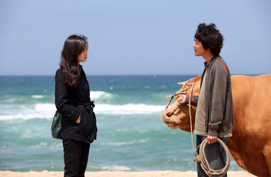 임순례 감독은 이 영화가 <워낭소리>보다 먼저 기획되었다며 조금은 억울한 듯 말했단다. 김도연 작가의 소설 <소와 함께 여행하는 법>을 읽고는 바로 영화로 만들고 싶었단다. 아마, 영화를 보게 되면 원작을 찾아 읽고 싶어질 것이다. 소설은 (여러 이유로) 지친 인간이 소와 함께 길을 떠나며 자신을 돌아보고, 관계를 생각해 보고, 득도(!)하는 이야기이다. 임순례 감독은 원작의 진수를 느긋하게 뽑아낸다. 처음에는 한 찌질한 지방대학 출신 룸펜의 처량한 인생이야기를 홍상수 스타일로 그리려나 싶었는데, 소가 눈을 한 번 껌뻑일 때마다, 공효진이 황당한 시츄에이션을 만들어낼 때마다, 김영필의 눈앞에 그 사람들이 다시 등장할 때마다 유머를 장착한 판타지로 완성된다.