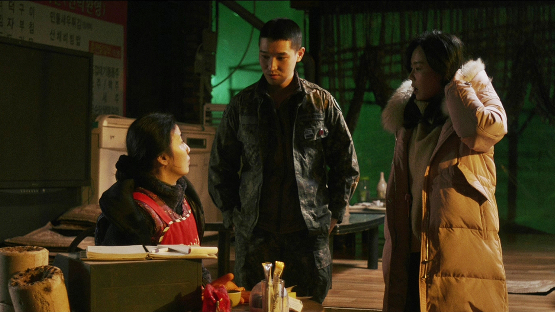 영화 <겨울밤에>는 보면 볼수록 감탄하게 되는 놀라운 구조로 이루어져있다. 공간은 택시 씬을 제외하고는 청평사 인근을 벗어나지 않는다. 민박집과 폭포, 그리고 법당 등을 배경으로 인물들이 교차한다. 탁월한 것은 시간적 배열이다. 영화는 은주와 흥주의 이야기를 하다가, 어느새 은주의 발길로, 흥주의 기억으로 들어간다. 그 사이에 끼어드는 젊은 연인들의 이야기는 묘한 착각을 불러일으킨다. 저들이 이들의 과거일지 모른다고. 저들이 기억하고 싶은 첫사랑의 순간일지 모른다고. 폭포의 살얼음판에서 이뤄지는 ‘고함’과 ‘눈물’은 이들의 기이한 인연을 말하는지 모른다. 결국, 찾고자 하는 핸드폰은 이야기에서 사라진다. 애당초 찾고자 한 것은 30년 전의 기억과 추억인지 모른다.