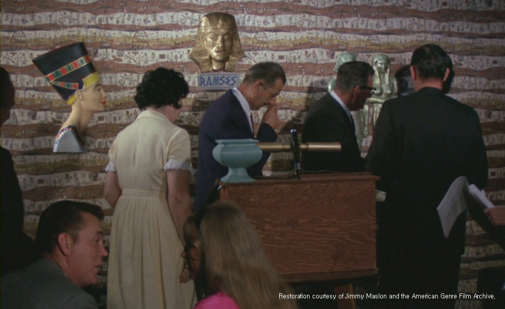 런닝타임 68분의 [피의 향연]은 그런 저예산 ‘스플래터 호러’의 전범을 보여준다. 영화는 당시(1963년) 미국 중산층의 일상에 침범한 공포를 보여준다. 마이애미 교외의 주택가. 라디오뉴스에서 연쇄살인 소식을 전하는 가운데 한 금발의 백인여성이 욕조에 들어간다. 그리고 첫 번째 ‘스플래터’의 공포를 보게 된다. 영화에서 ‘람세스’라는 이름을 가진 한 이집트인 요리사가 연쇄 살인을 벌인다. 그는 죽인 여자들의 신체 일부를 사용하여 잠자는 이집트 여신, ‘이슈타르’를 깨우려고 한다. 람세스는 ‘이슈타르’를 위해 5천년 동안 중단된 최후의 만찬을 준비하는 것이었다. 그 연쇄살인범을 쫓는 형사의 애인이 람세스의 마지막 희생자가 될 위험에 놓인다.