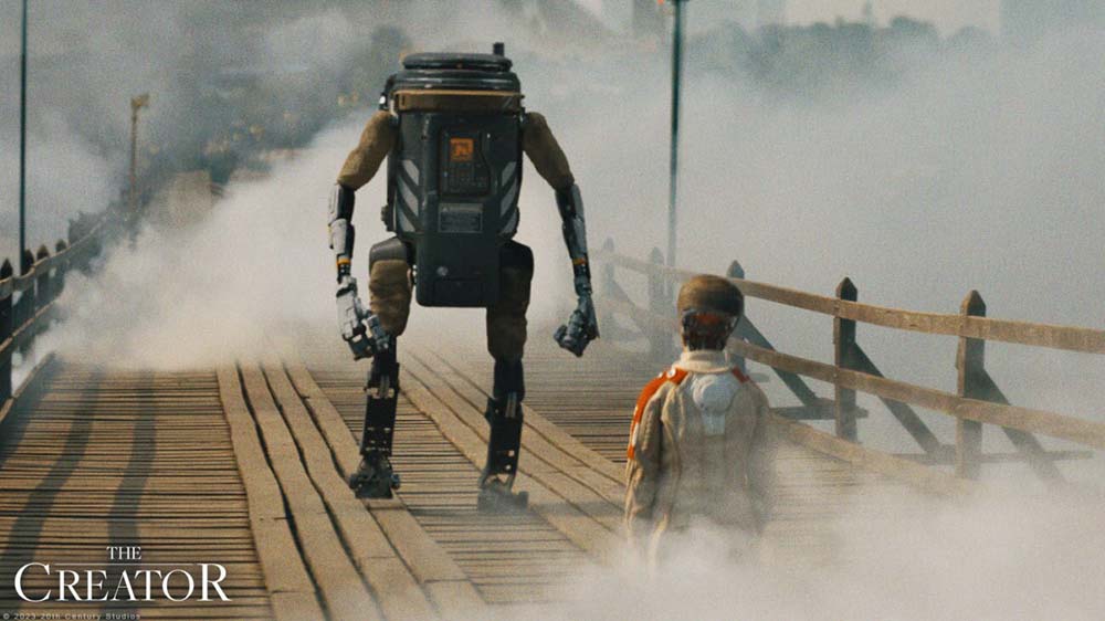 <크리에이터>는 할리우드의 화려한 비주얼과 영상 장인들이 집결한 작품이다. <고질라>(2014)와 <로그 원: 스타워즈 스토리>의 개럿 에드워즈 감독과 함께 <듄>의 그레이그 프레이저 촬영감독과 조 워커 편집감독, <그래비티>의 특수효과 닐 코볼드, 게다가 한스 짐머의 음악까지. 후반부 지구 상공과 지구 표면을 화려하게 수놓는 폭발신은 아이맥스로 보고싶은 생각이 절로 들 것이다.