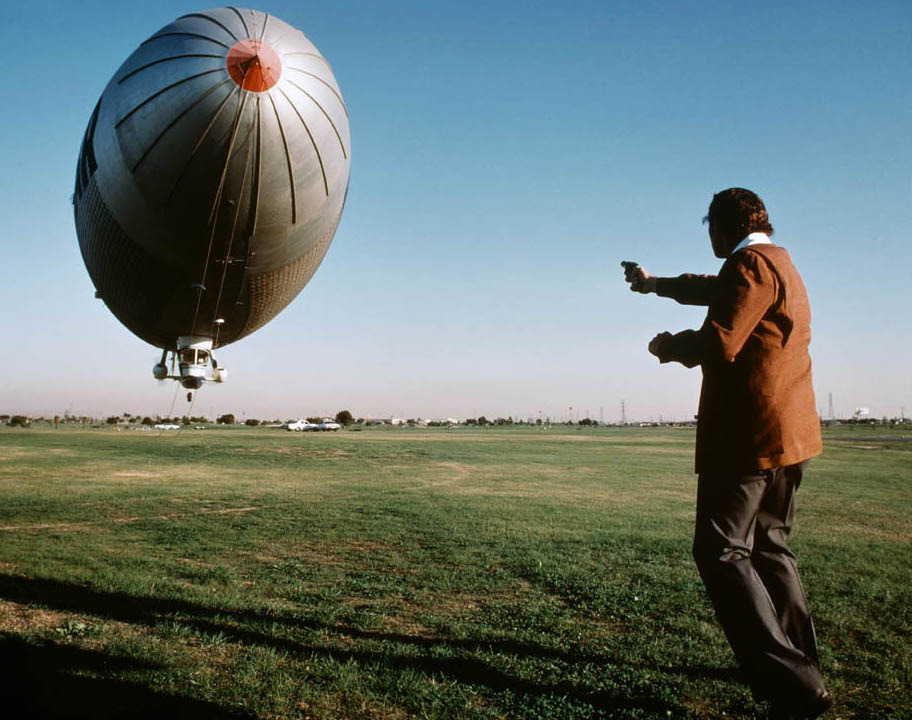 물론, CG로 만들어낸 <타이타닉>을 보았고, 또 CNN을 통해 뉴욕의 월드 트레이드센터가 허망하게 무너져 내리는 것을 본 사람으로서는 1977년에 만들어진 이 영화의 특수효과에 대해선 대단히 실망하게 될 것이다. 무려 8만 명이 운집한 거대한 스타디움에 초대형 비행선이 들이받는 장면을 영상에 담으려면 두 가지 방법 밖에 없을 것이다. 실제로 찍든지, 아니면 미니어처로 만들든지. 아마도, 이 영화는 실제 경기장면과 비행선 장면 등을 적절히 짜집기한 듯하다. <쉬리>의 마지막 축구장 경기장면처럼 일종의 도둑촬영인 셈이다.