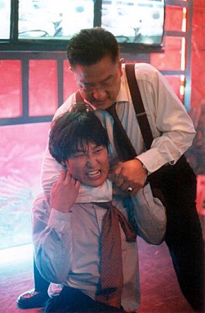 영화는 한 남자의 재미있는 모험담을 다룬다. 매일같이 지각하는 은행원이 있다. 그런 그를 못 잡아먹어 안달인 직장상사는 송영창이다. <인정사정 볼 것 없다>에서 칼 맞아 죽고, 그 전해 만들어진 <정사>에서는 바람난 마누라 때문에 가슴 아파하던 그 배우. 이 영화에서는 지각대장 송강호를 맨날 구박주고, 잔소리하고, 스트레스를 팍팍 준다. 게다가 화장실까지 따라와서는 송강호에게 육체적인 고통을 준다. 그가 사용하는 방법은 송강호를 화장실 코너로 몰아넣어서는 목을 꽉 낚아챈다. 스포츠學에서는 이것을 '헤드락'이라고 하고, 우리는 이것을 직장생활에서 만연하는, '직위를 이용한 엽기적 고통주기'라고 부를 만하다.