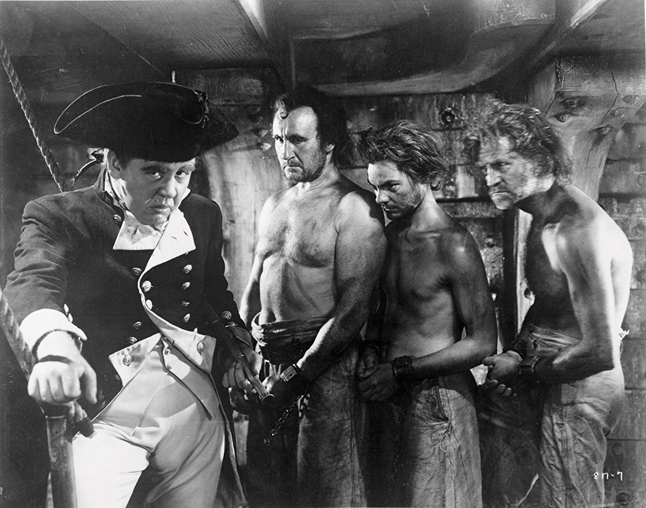 블라이 선장 역의 찰스 로튼은 그야말로 환상적인 연기를 보여준다. 그의 말 한마디면 목숨이 왔다 갔다 하는 절대 권능의 독재자 연기를 한다. 그리고 심복들과 함께 망망대해에 내버려졌을 때 수십 일을 거친 파도와 배고픔을 이겨내며 살아서 복수하려는 집착과 함께 탁월한 통솔, 지도력을 보여주기도 한다. 섬뜩할 정도로.