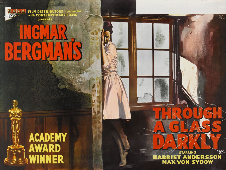 이 작품은 우리나라 진원석 감독의 <투 타이어드 투 다이>라는 영화에서 오마쥬 되었듯이 창작하는 사람의 신학적 영감을 불러일으킨다. 아주 구해 보기 힘들 것 같았던 베르히만 감독의 몇 작품이 우리나라에서도 DVD로 출시되기까지 했다. 진지하게 영화를 찾아보는 사람로서는 복 받은 일. 하지만 EBS가 그런 수고를 들어주었다. 지난 주말 이 감독의 대표작 하나가 방영되었다. <유리를 통해 어렴풋이>. 때로는 <어두운 거울을 통해>, 혹은 <거울을 통해 어렴풋이>라는 제목으로 번역되기도 한 1961년도 작품이다. 그가 이 시절 잇달아 내놓은 <겨울빛>, <침묵>과 함께 이른바 ‘신앙 3부작’으로 불린다. 왜 그런 경건한 부름을 받는지는 영화를 보고 나면 알게 된다.