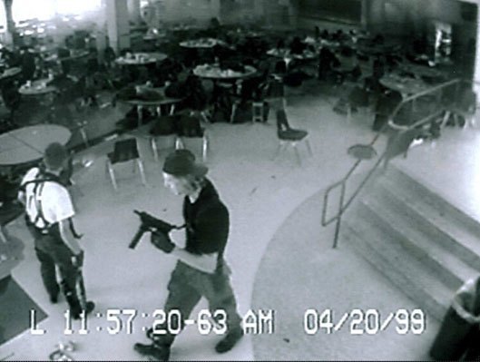 두 명의 고등학생 에릭 해리스와 딜란 클래볼드이 이날 아침 학교에서 트렌치코트 자락을 멋지게 휘날리며 닥치는 대로 총을 쏘기 시작한 것이다. 마치 <매트릭스>에서의 키아누 리브스처럼. 그들은 교실이고, 도서관, 식당이고 돌아다니며 마구 쏘아댄 것이다. 911에는 비상사태를 알리는 전화가 쏟아졌고, 각 방송국에서는 긴급연결 생방송을 해대기 시작했다. 15명을 죽이고 수십 명에게 부상을 입힌 후, 두 소년은 자살했다. 이것이 그 유명한 ‘1999년 4월 20일 콜럼바인 고등학교 총기난사’ 사건이다.