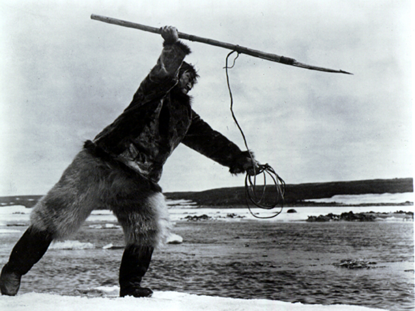 우선, 북극지방에 거주하는 사람들을 일컫는 에스키모는 ‘날고기를 먹는 인간’이란 뜻이란다. 그들은 스스로를 ‘이뉴잇’이라고 한단다. 이것은 그냥 ‘인간’, ‘우리 민족’이란 뜻의 말이다. 플라허티는 ‘이뉴잇’ 마을에서 ‘이뉴잇’의 생활모습을 담았다. 그의 필름에는 나누크의 가족들이 주로 잡혔다. 나누크는 ‘곰’을 뜻한다. 가장 나누크와 아내 니알라, 그리고 몇몇 가족들이 눈과 얼음의 동네에서 살아남는 방법을 보여준다. 작살로 바닷 밑 물고기를 낚는 장면이나, 1톤이 넘는 해마와 생사를 겨루는 줄다리기 등은 여전히 흥미진진한 모습이다. 그리고, 그들이 실제 이글루를 만드는 방식도 흥미롭지만 실제 그들이 추운 밤을 이글루에서 보낼 때 바깥에서 차가운 눈바람을 그대로 맞고 밤을 보내는 썰매 끄는 개의 모습은 극적이기까지 하다.
