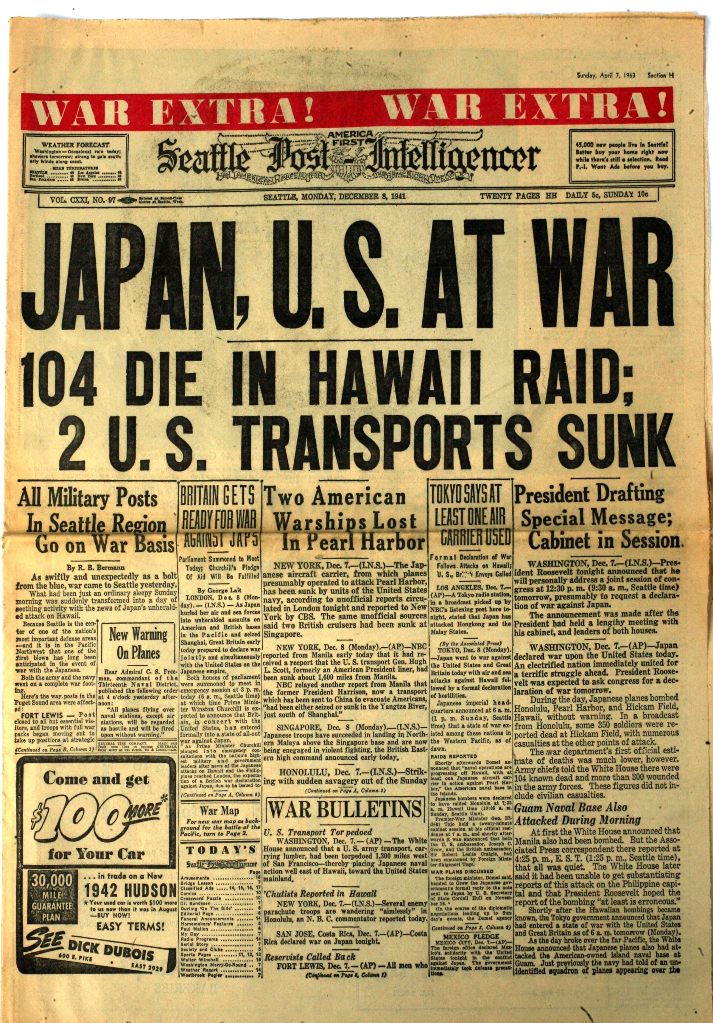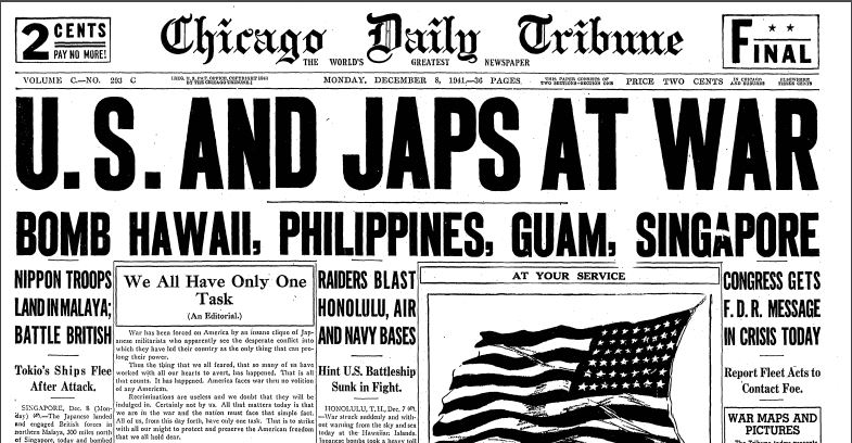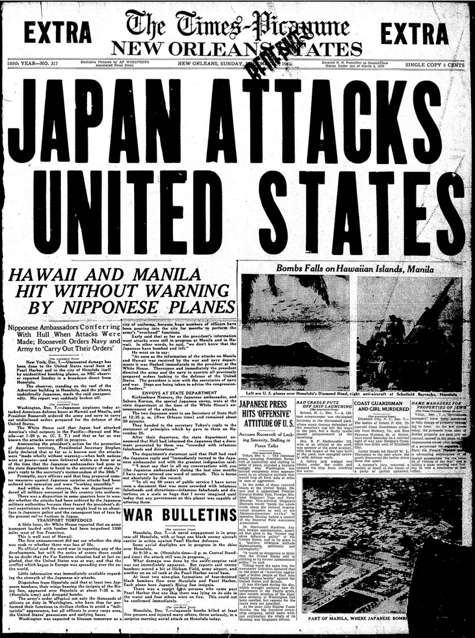 조용한 일요일 아침, 세계대전의 포연 속에서 유독 평화롭게 지내던 미국은 이날 갑작스런 일본군의 대담한 공격에 의해, 총 21척의 미군 전함이 바다 속에 가라앉거나 심하게 파손됐다. 아울러 약 200대의 전투기가 폭파됐는데 거의 대부분은 비행장에서 폭격당했다. 인명 피해로는 2,409 명이 목숨을 잃었고 1,178 명이 부상을 입었다. 반면, 미국 하버드대 출신의 야마모토 사령관의 진주만 공습은 완벽하게 성공한 군사작전이었다. 일본군은 다섯 척의 초소형 잠수정과 29대의 전투기를 잃었고 55명의 파일럿과 9명의 잠수정 대원이 목숨을 잃었을 뿐이다.